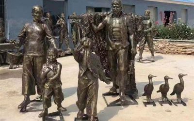 漁業文化主題雕塑 玻璃鋼捕魚人物雕像