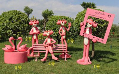 粉紅豹雕塑 玻璃鋼卡通豹雕塑
