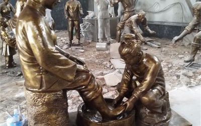 玻璃鋼孝文化人物雕塑,給母親洗腳雕塑定做