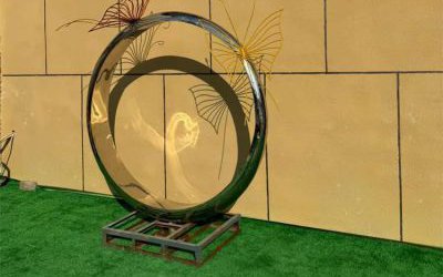 不銹鋼蝴蝶圓環雕塑,抽象發光月亮雕塑廠家
