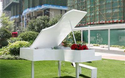 白色鋼琴雕塑,不銹鋼音樂主題雕塑