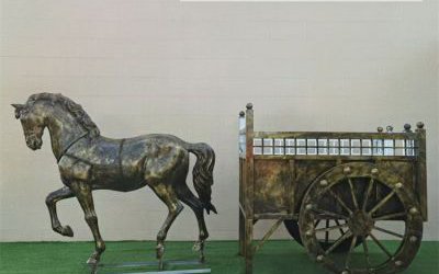 玻璃鋼馬車人物雕塑,大型馬車雕塑制作廠家