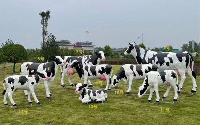 隨著全球化的加速,玻璃鋼仿真奶牛雕塑已成為海外界文化溝通方式。一般來說,大型動物主題雕塑是一種具有獨特意義和價值的藝術作品,這些奶牛文化雕塑以精湛的工藝和朝氣蓬勃的表達形式,向社會傳達了對農業和自然的深刻領會,也展示了奶牛在人類文化中的重要地位。