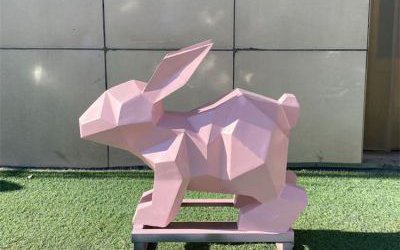 不銹鋼彩色小兔子雕塑,幾何切面小兔子雕塑廠家