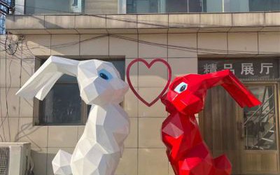 不銹鋼幾何切面兔子雕塑,抽象情侶兔子雕塑加工廠