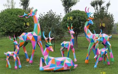 不銹鋼幾何彩繪鹿雕塑 展現出了鹿的優雅與穩重